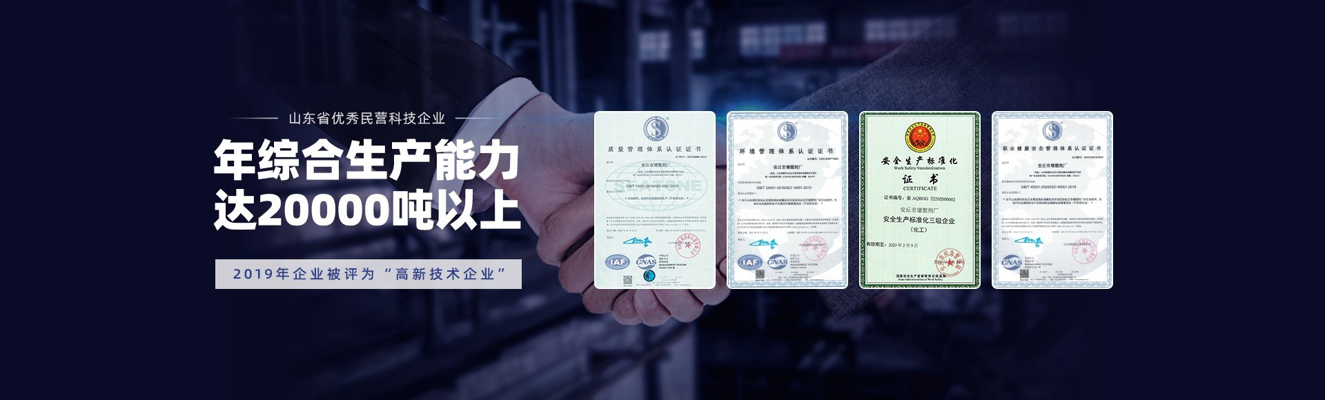 安丘市增塑劑廠始建于1984年,坐落在“全國重點鎮(zhèn)”安丘市景芝鎮(zhèn),山東省高新技術(shù)企業(yè),“山東制造”品牌認定企業(yè)。主要從事油田化學(xué)品的研制、生產(chǎn)與銷售,是破乳劑、瀝青抑制劑等油田化學(xué)品專業(yè)生產(chǎn)廠家。公司先后與中國石油大學(xué)、山東理工大學(xué)和濱州學(xué)院合作,建立了“油田化學(xué)聯(lián)合研究所”、“水處理聯(lián)合研究所”、“長期教學(xué)基地”和“大學(xué)生創(chuàng)新創(chuàng)業(yè)實踐基地”。公司已通過ISO9001質(zhì)量體系認證、ISO14001環(huán)境管理體系認證和ISO45001職業(yè)健康安全管理體系認證,取得“安全生產(chǎn)標(biāo)準化證書”。公司配套產(chǎn)品生產(chǎn)線10條,年綜合生產(chǎn)能力20000噸以上。